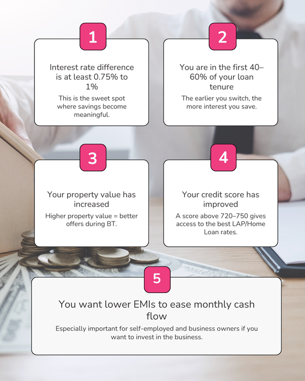 The truth is it works out much easier than we imagine. The savings add up to a lot. Your property could be self-occupied or rented out. Maybe it serves business needs. A balance transfer at the right time reduces your EMIs, your interest costs and helps you to repay debt quick. We break it all down here in simple steps.